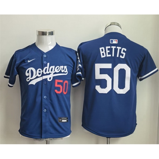 - Youth Los Angeles Dodgers 50 Mookie Betts Blue Limited Stitched Baseball Jersey