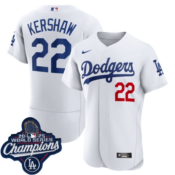 Home>MLB>2025 World Series>Los Angeles Dodgers Champions>Men Los Angeles Dodgers 22 Clayton Kershaw Cool Base 2025 World Champions Stitched Baseball Jersey White