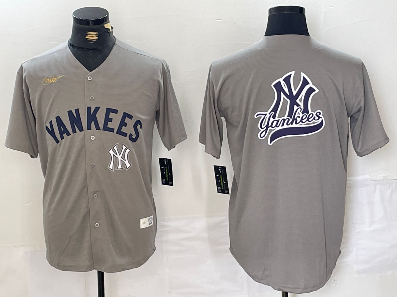 - Men New York Yankees Grey Team Big Logo Cool Base Stitched Baseball Jersey 5