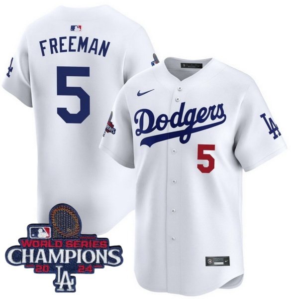 Home>MLB>2024 World Series Champions>Men>Men Nike Los Angeles Dodgers Freddie Freeman #5 White Flex Base 2024 World Series Champions Stitched MLB Jersey