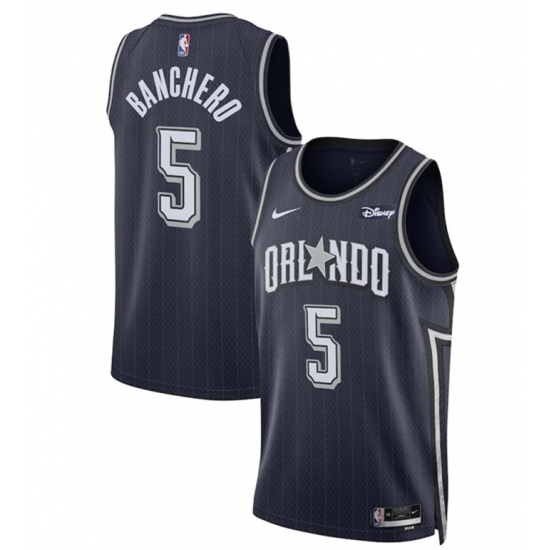 - Men Orlando Magic 5 Paolo Banchero Navy 2023 24 City Edition Stitched Basketball Jersey