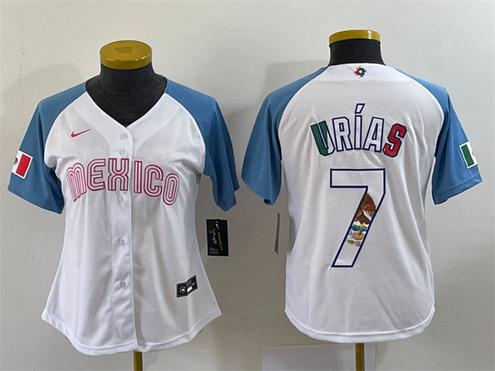 - Women's Mexico Baseball #7 Julio Urias Number 2023 White World Classic Stitched Jersey6