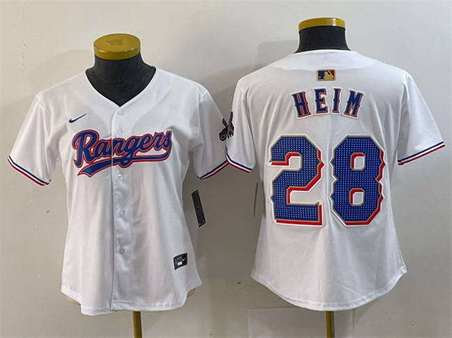 - Women Texas Rangers 28 Jonah Heim White 2024 Gold Collection Stitched Baseball Jersey