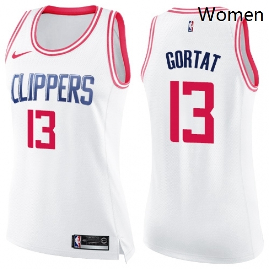 - Womens Los Angeles Clippers 13 Paul George Swingman White Pink Fashion Basketball Jersey