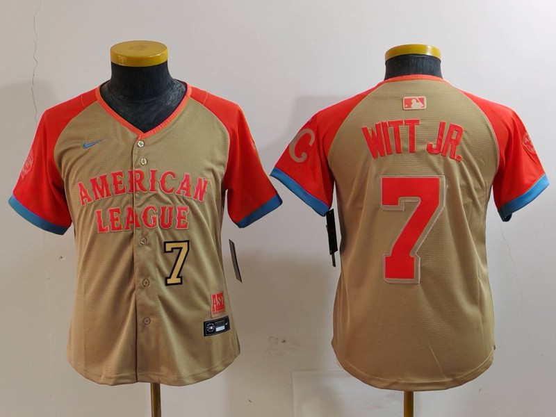 - Youth American League 7 Bobby Witt Jr Cream 2024 All Star Limited Stitched Jersey 2