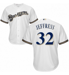 - Youth Majestic Milwaukee Brewers 32 Jeremy Jeffress Replica White Alternate Cool Base MLB Jersey