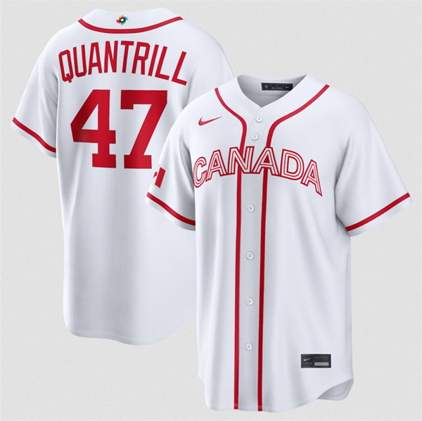 Men Canada Baseball 47 Cal Quantrill White 2026 World Baseball Classic Home Stadium Stitched Jersey