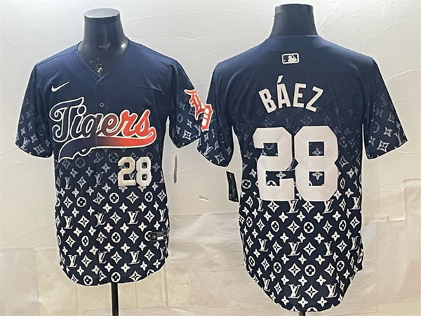 - Men Detroit Tigers Navy Team Big Logo Cool Base Stitched Baseball Jersey