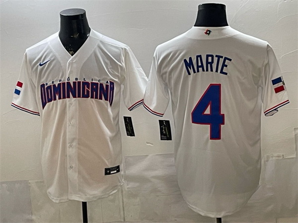 Home>MLB>2026 World Baseball>Dominican Republic>Men Dominican Republic Baseball 4 Ketel Marte White 2026 World Baseball Classic Home Stadium Stitched Jersey