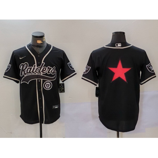 - Men Las Vegas Raiders Black Team Big Logo With Patch Cool Base Stitched Baseball Jersey 1
