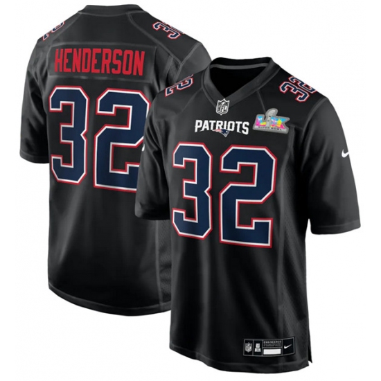 Men New England Patriots 32 TreVeyon Henderson Black 2025 Super Bowl LX Patch Carbon Fashion Stitched Game Jersey