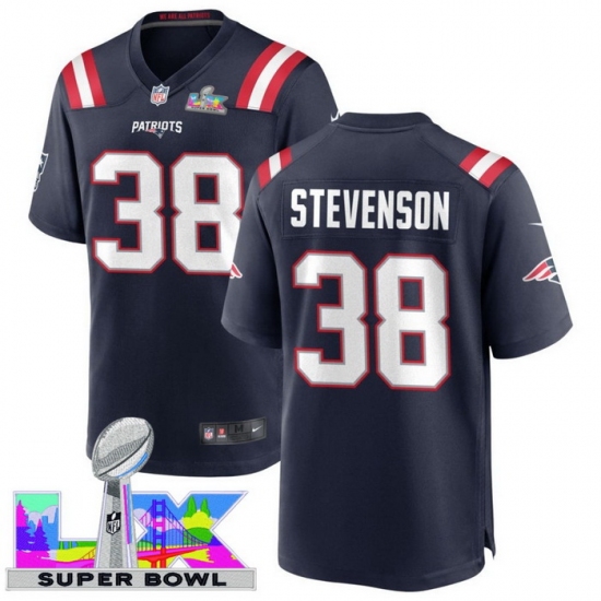 Men Women youth New England Patriots #38 Rhamondre Stevenson 2025 2026 Super Bowl LX F U S E Stitched NFL Jersey Blue