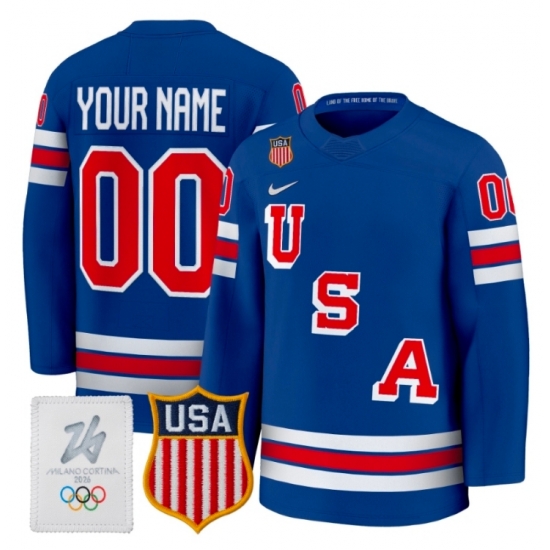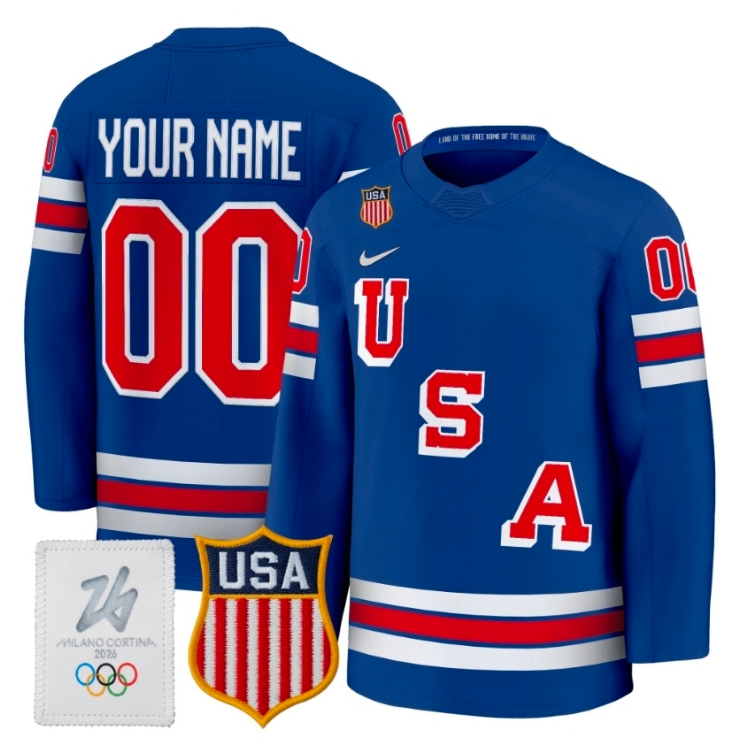 - Men's USA #86 Jack Hughes Blue 2026 Stitched Hockey Jersey
