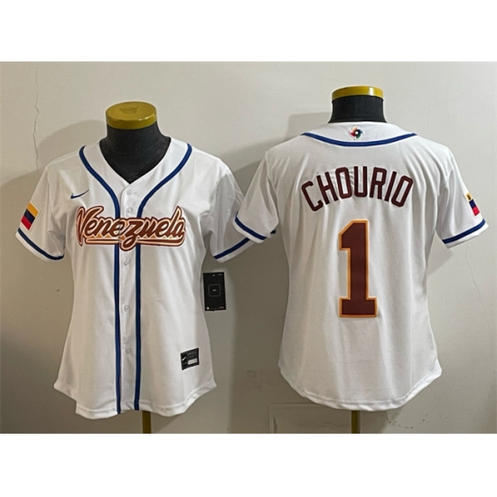 Women Venezuela Baseball 1 Jackson Chourio White 2026 World Baseball Classic Home Stadium Stitched Baseball Jersey Run Small
