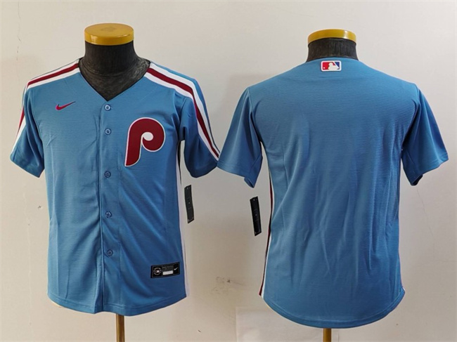- Youth Philadelphia Phillies 28 Alec Bohm Blue Cool Base Stitched Baseball Jersey 3